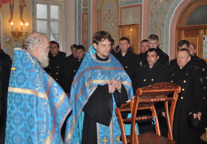 В храме святого благоверного князя Даниила Московского прошел молебен с участием сотрудников Пограничного управления ФСБ РФ по Хабаровскому краю и ЕАО. Праздник Введения во храм Пресвятой Богородицы. 4 декабря 2012 г.