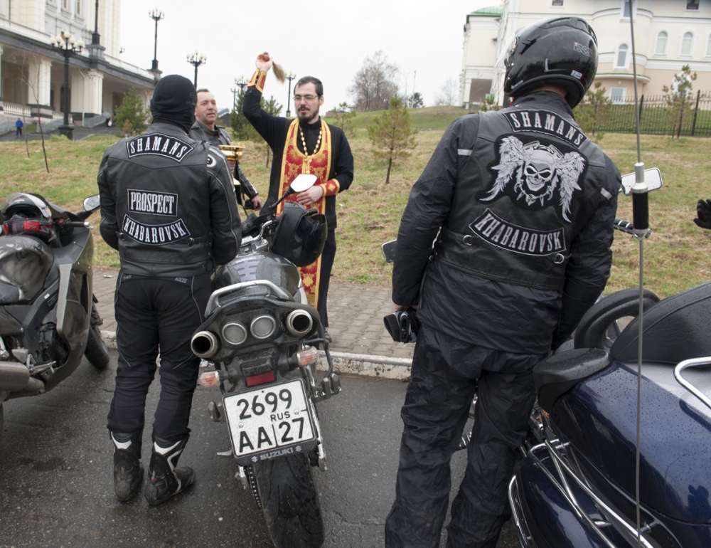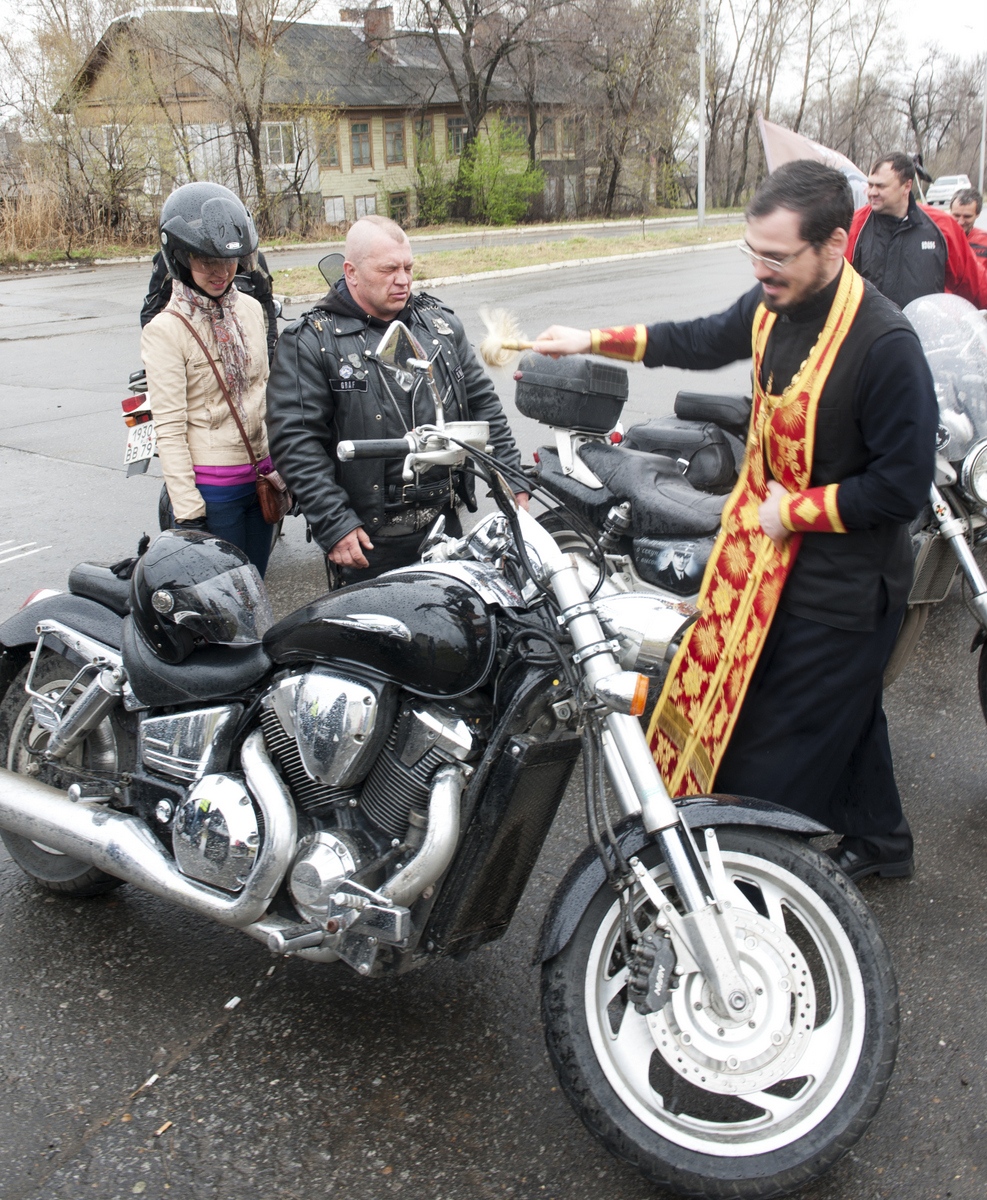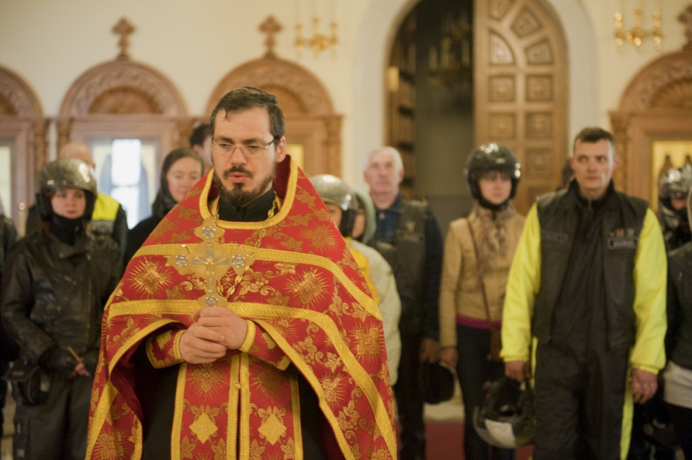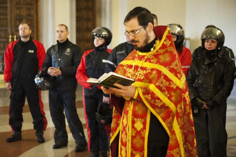 Молебен о путешествующих байкерах перед началом мотосезона в кафедральном соборе Хабаровска. 11 мая 2013 г.