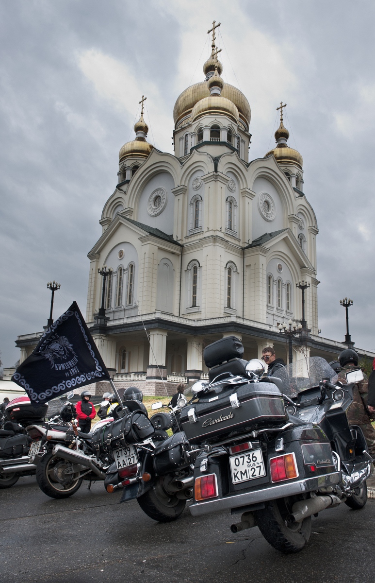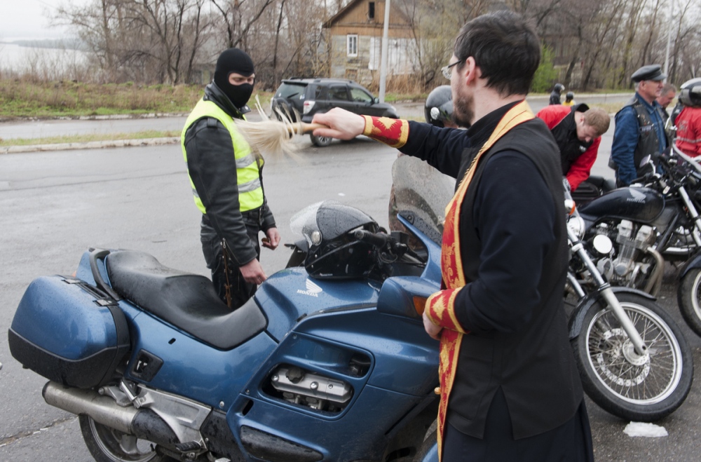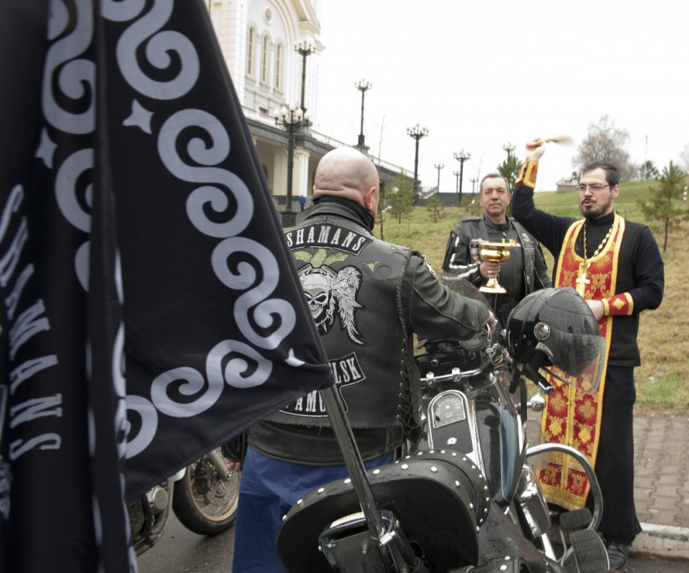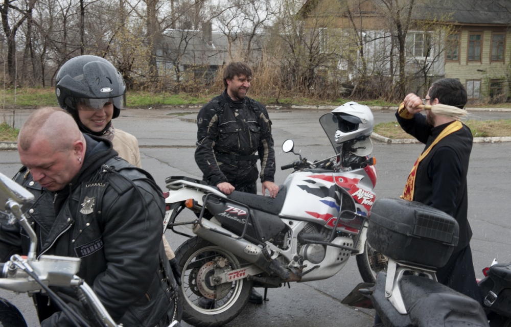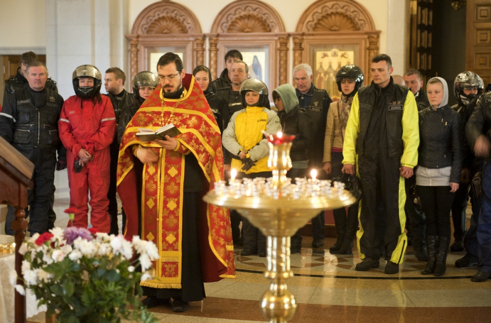 Молебен о путешествующих байкерах перед началом мотосезона в кафедральном соборе Хабаровска. 11 мая 2013 г.