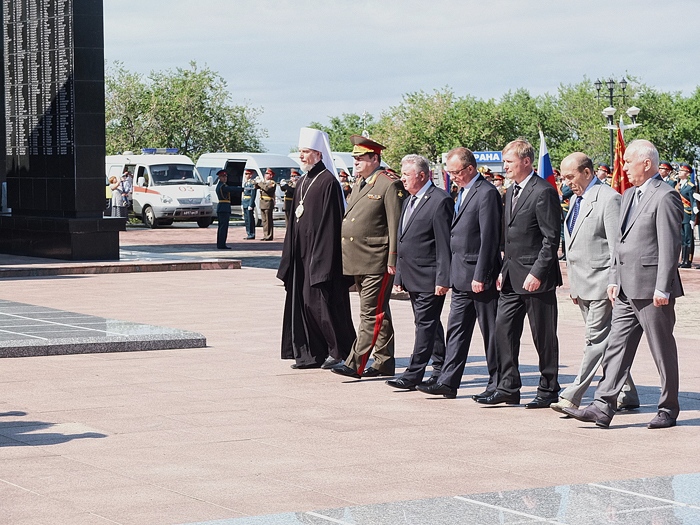 Хабаровск православный Фотогалерея События Митрополии Возложение цветов к Вечному огню на площади Славы. 22 июня 2013 г.
