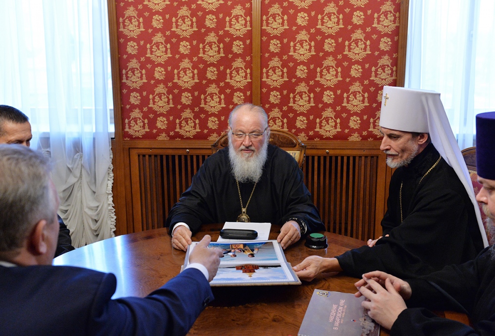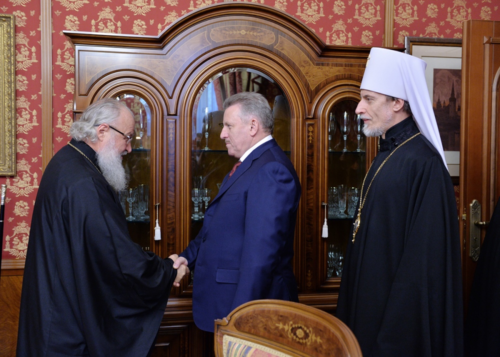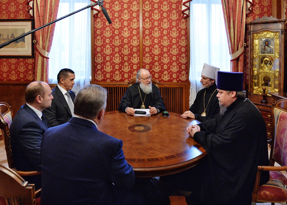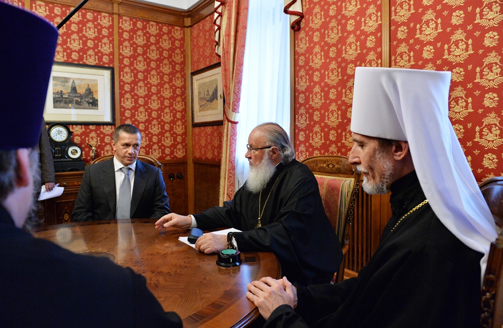 Встреча Святейшего Патриарха Кирилла с полномочным представителем Президента РФ в Дальневосточном федеральном округе, министром по развитию Дальнего Востока и губернатором Хабаровского края. 31 декабря 2013 г.