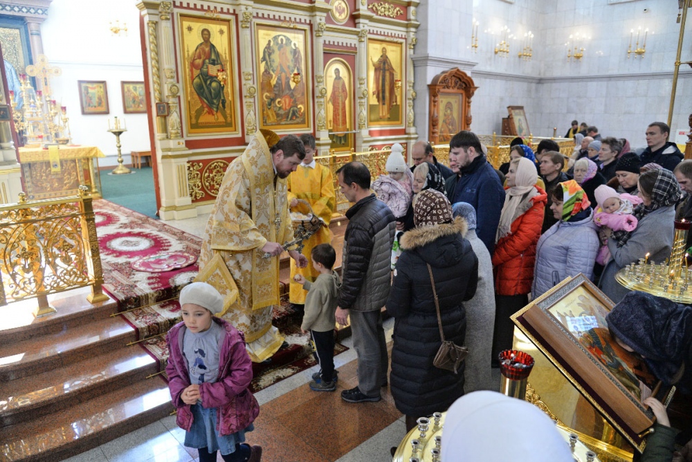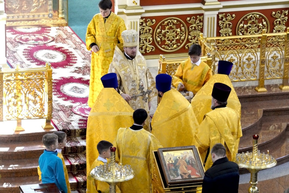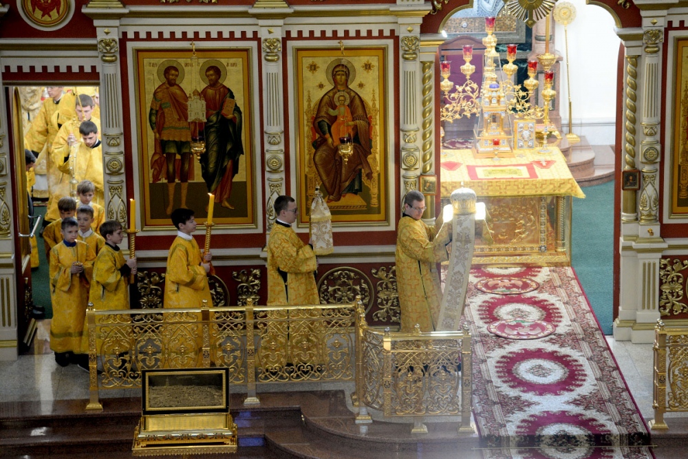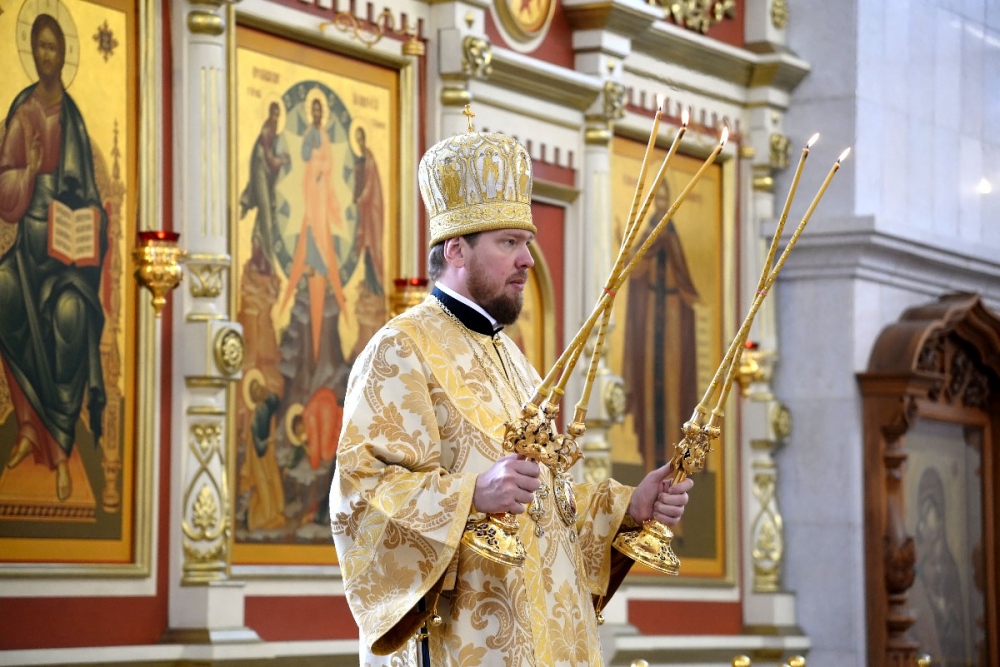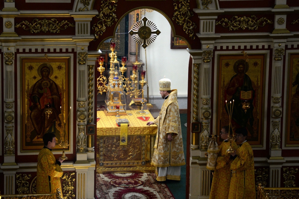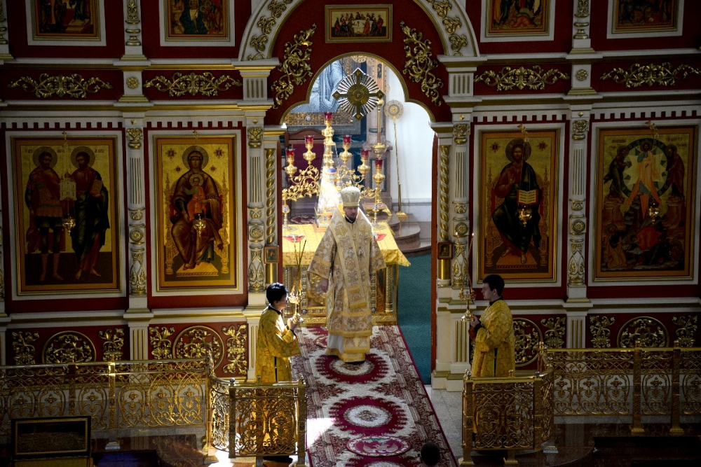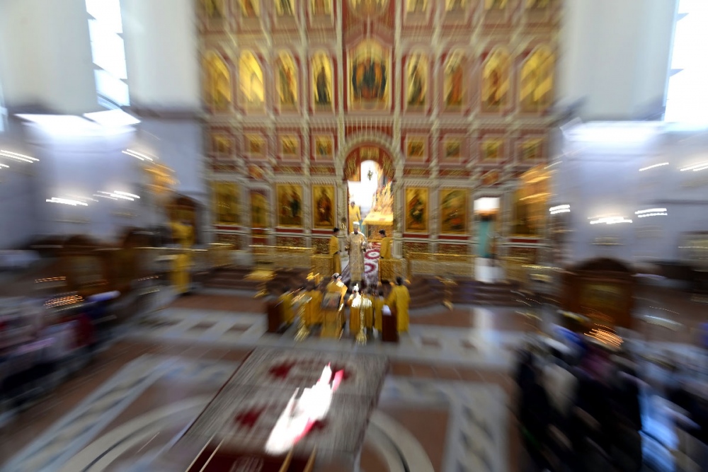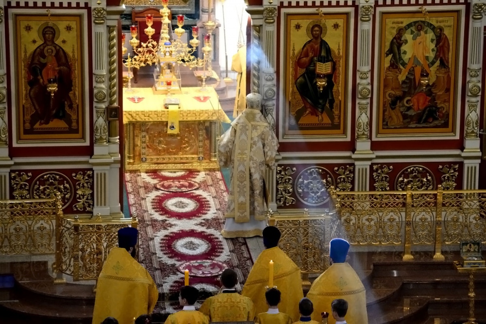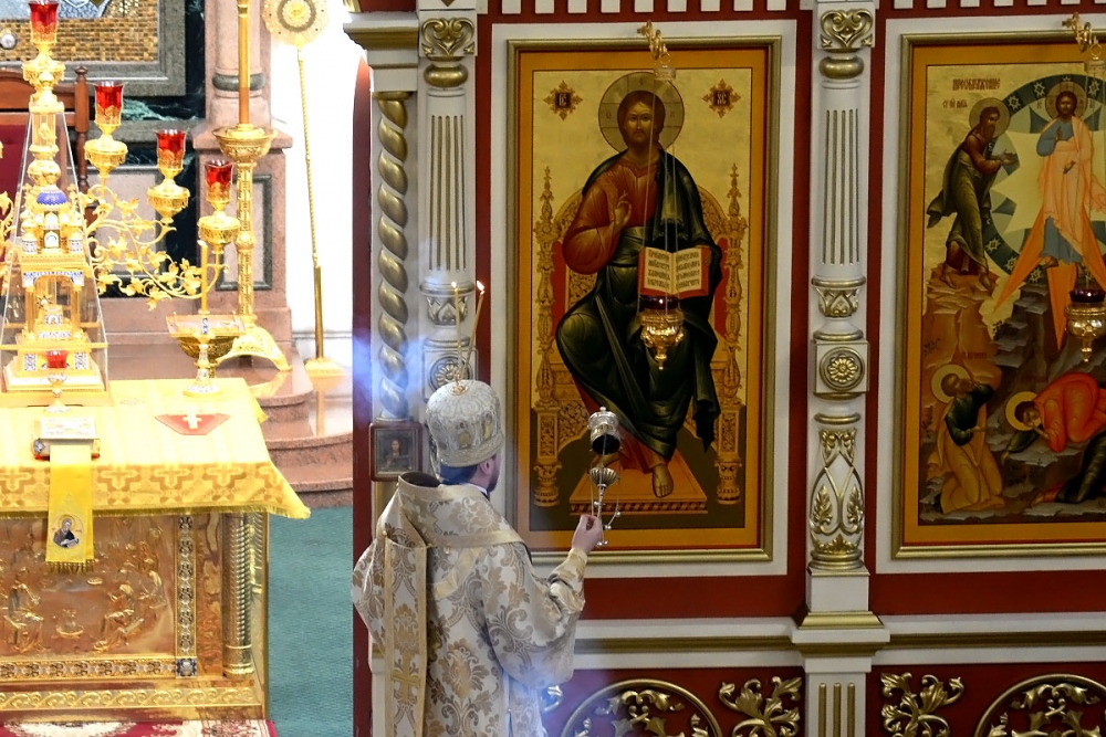 В Неделю 20-ю по Пятидесятнице митрополит Владимир совершил Божественную литургию в Спасо-Преображенском кафедральном соборе. 22 октября 2017 г.