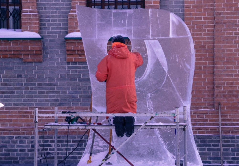 Участники конкурса ледовых скульптур «Рождественские узоры Амура» за работой 18 января 2018 г.