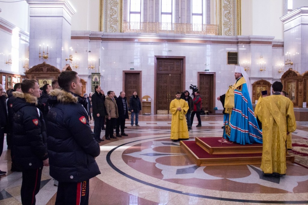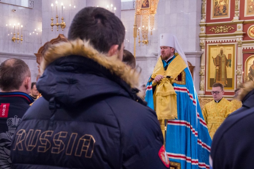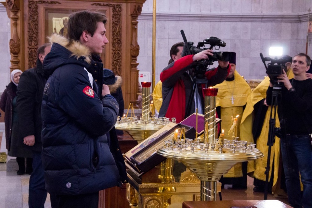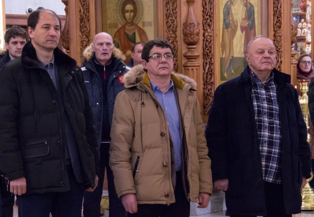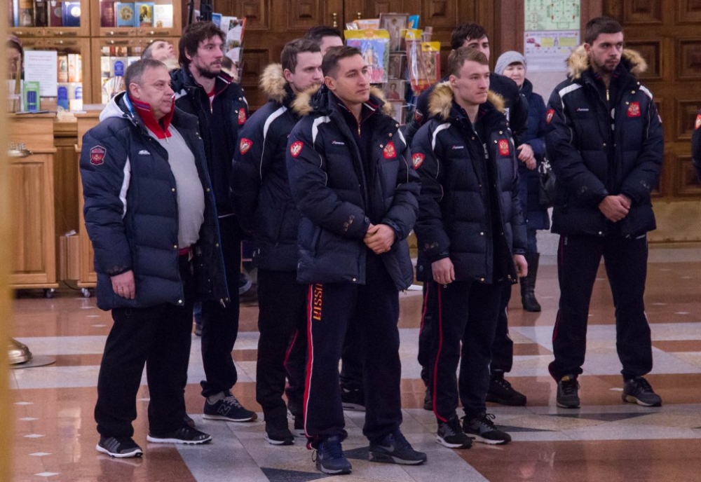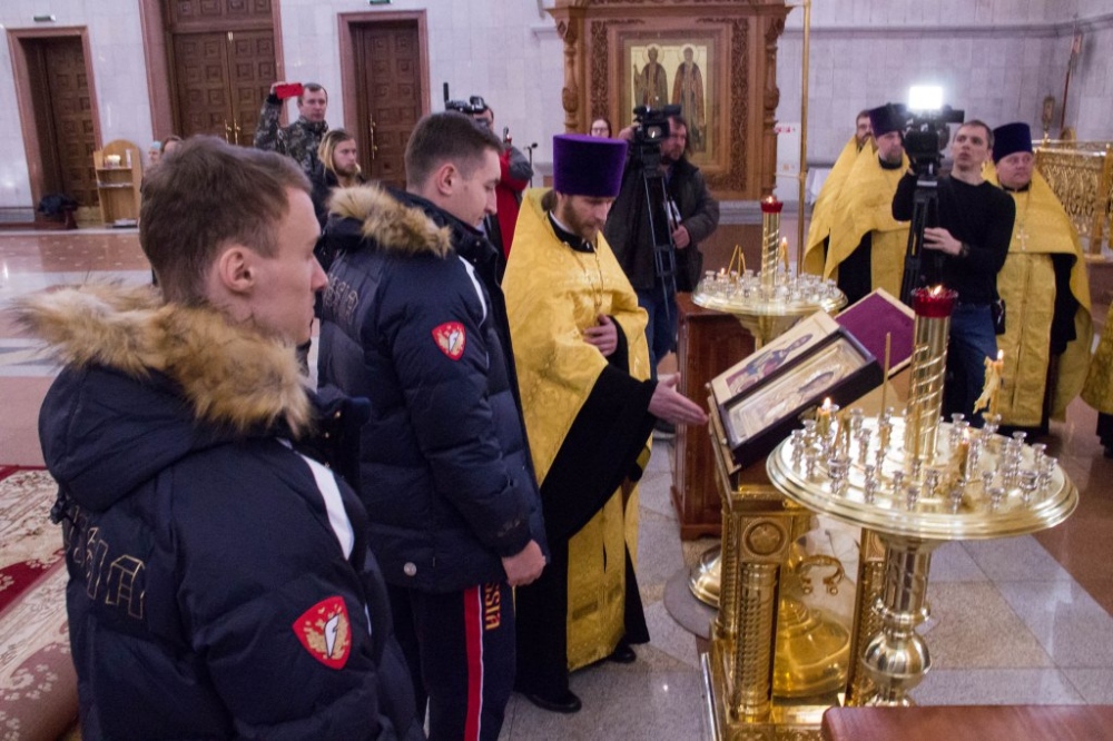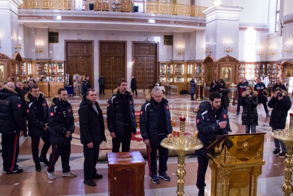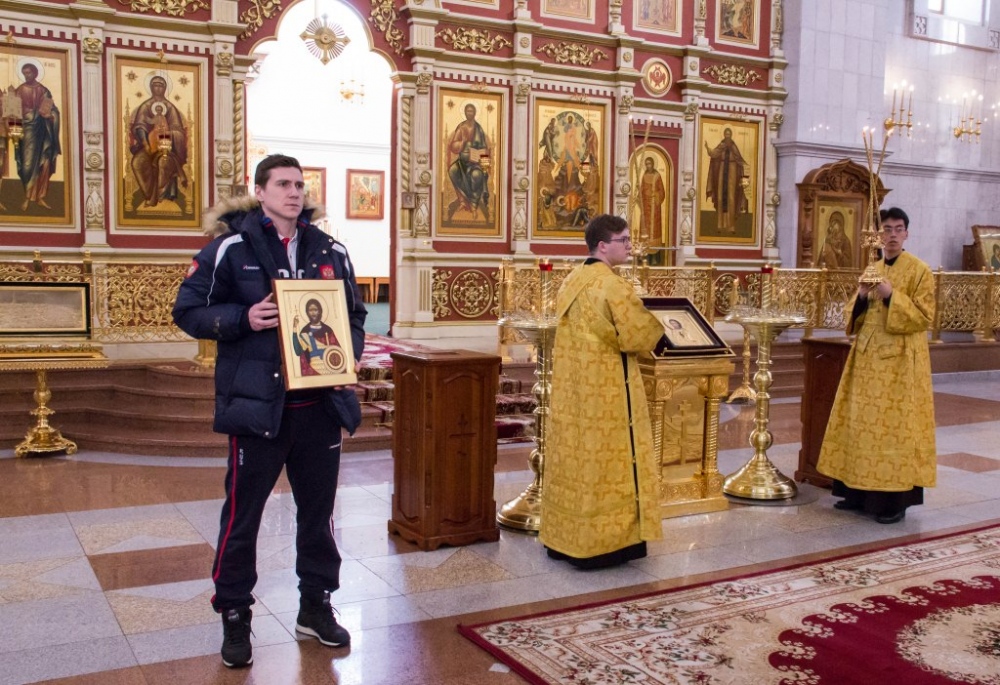 Члены сборной России по хоккею с мячом помолились в главном храме Хабаровска перед чемпионатом мира 29 января 2018 г.
