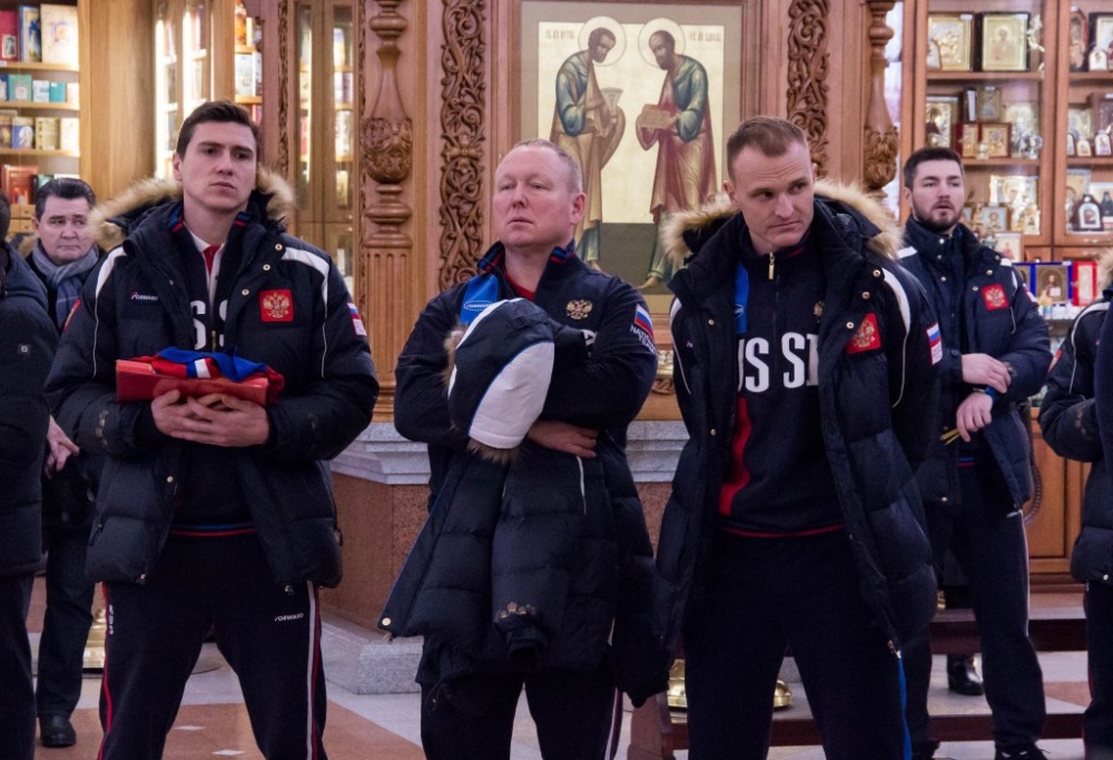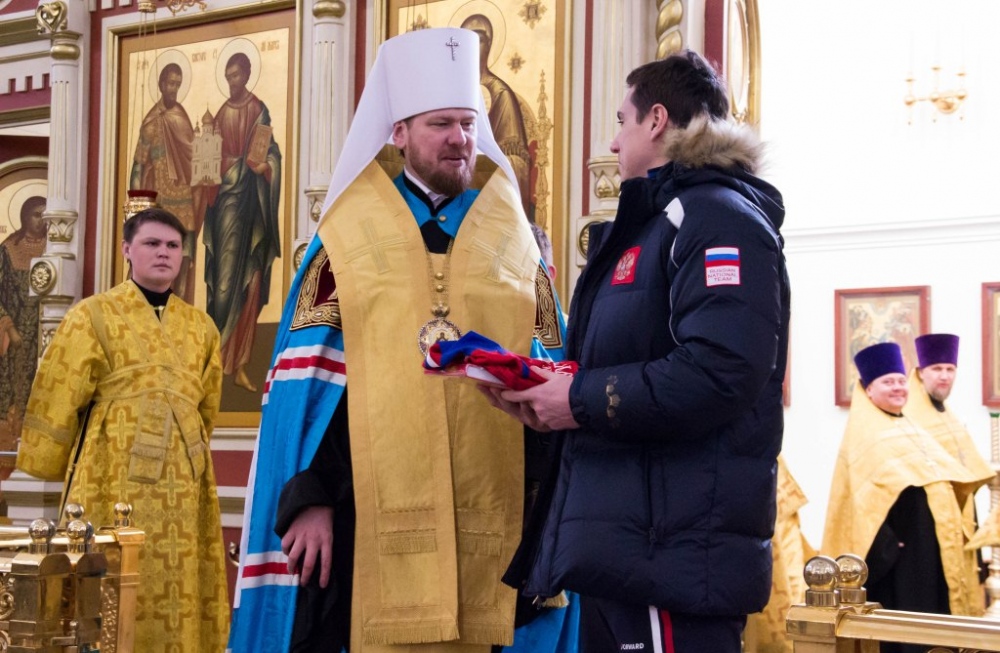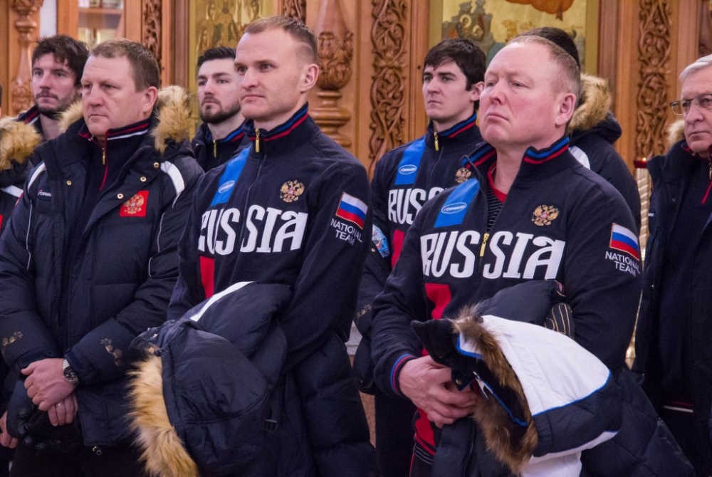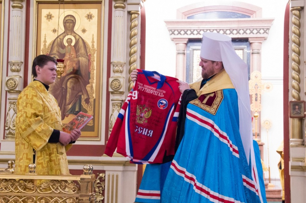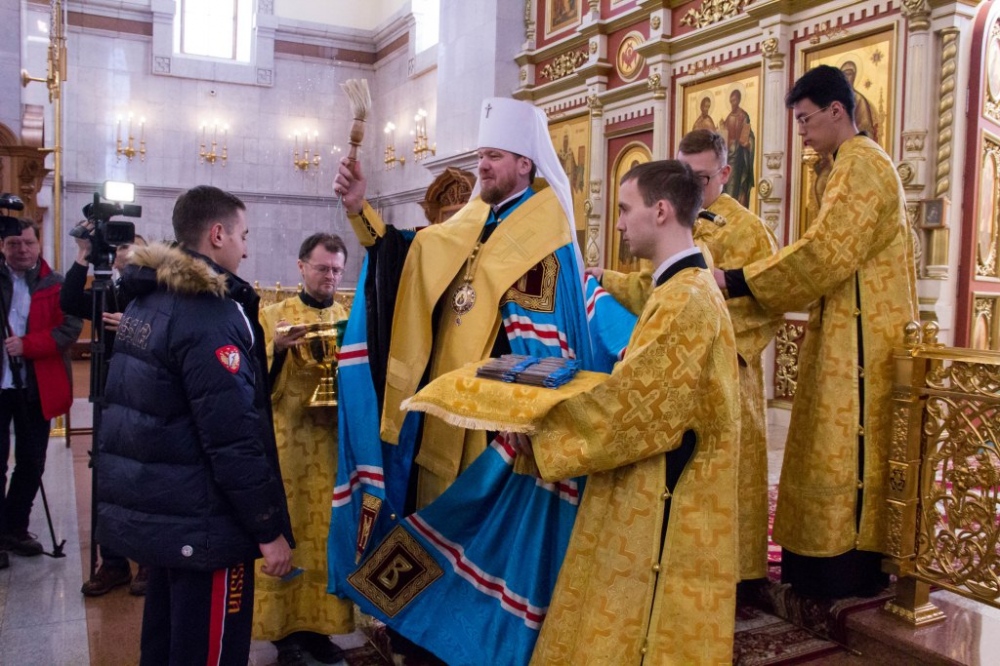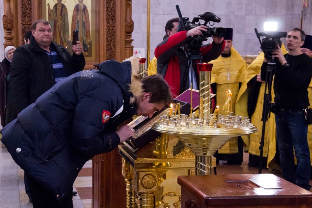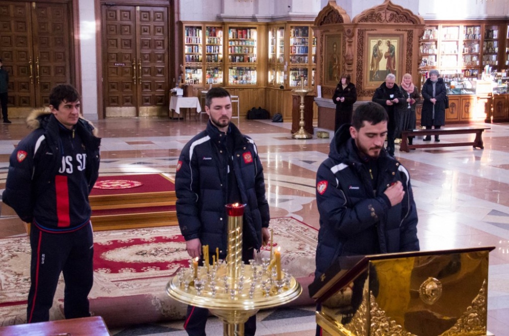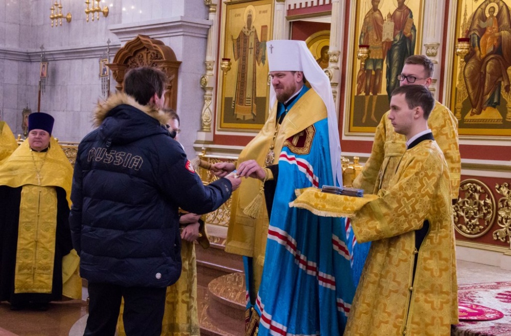 Члены сборной России по хоккею с мячом помолились в главном храме Хабаровска перед чемпионатом мира 29 января 2018 г.