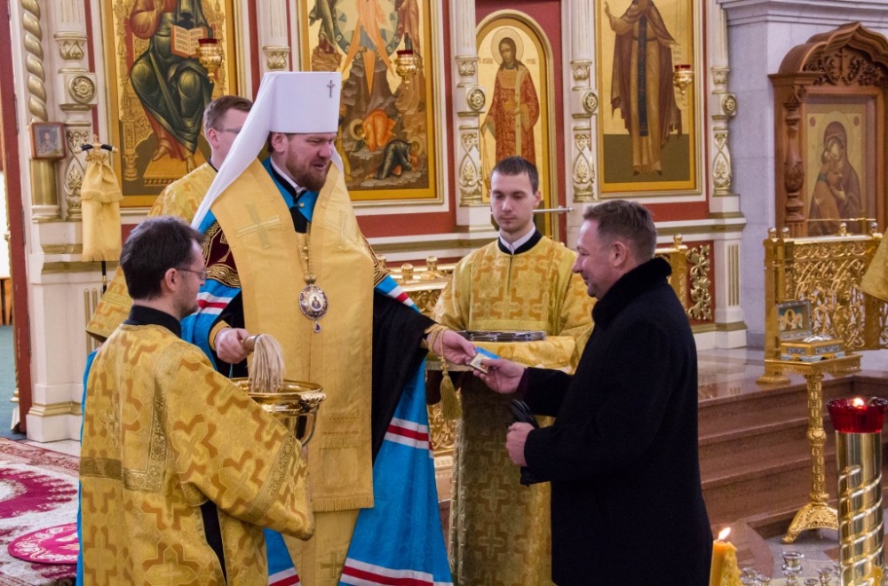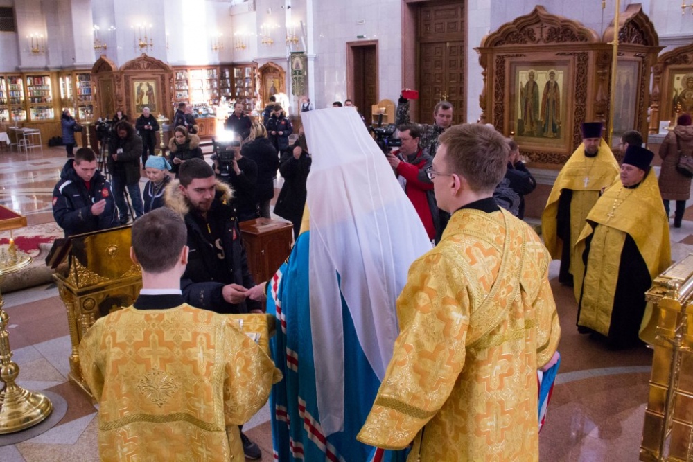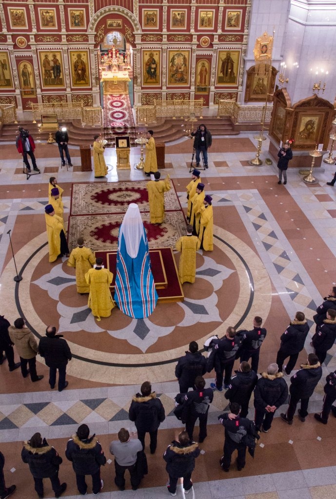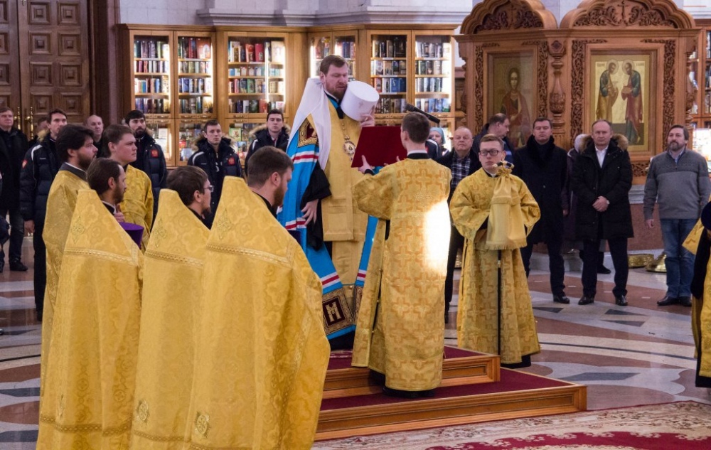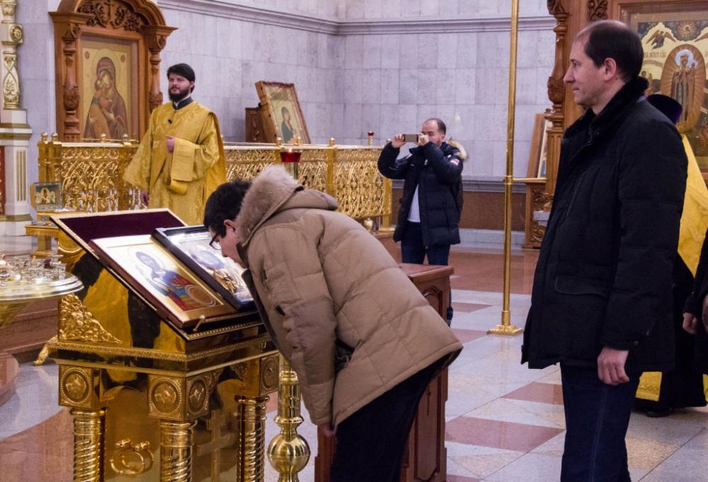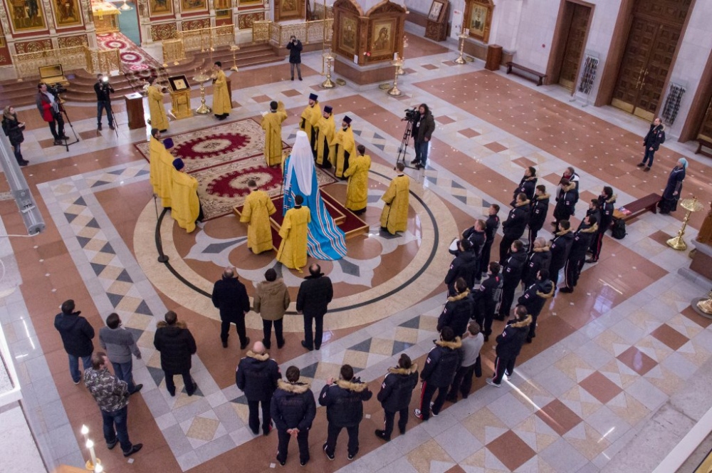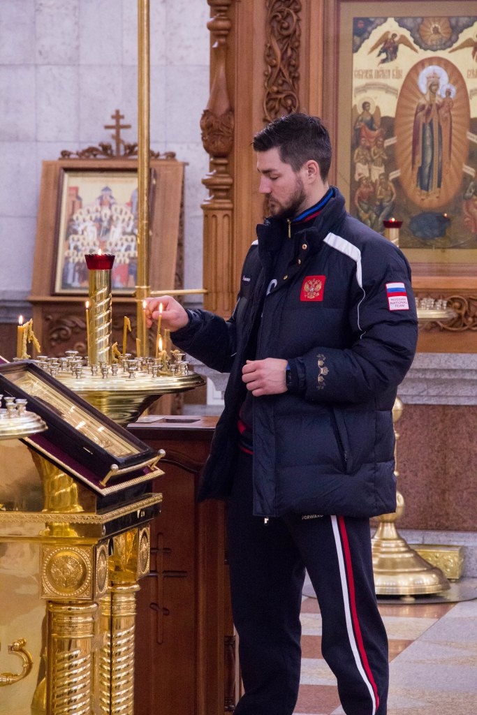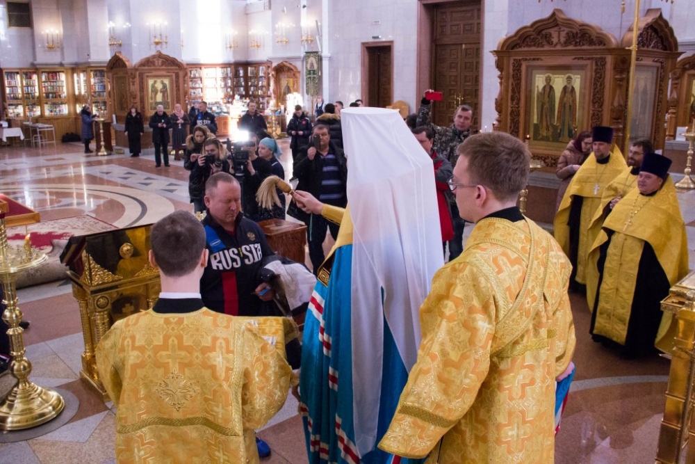 Члены сборной России по хоккею с мячом помолились в главном храме Хабаровска перед чемпионатом мира 29 января 2018 г.