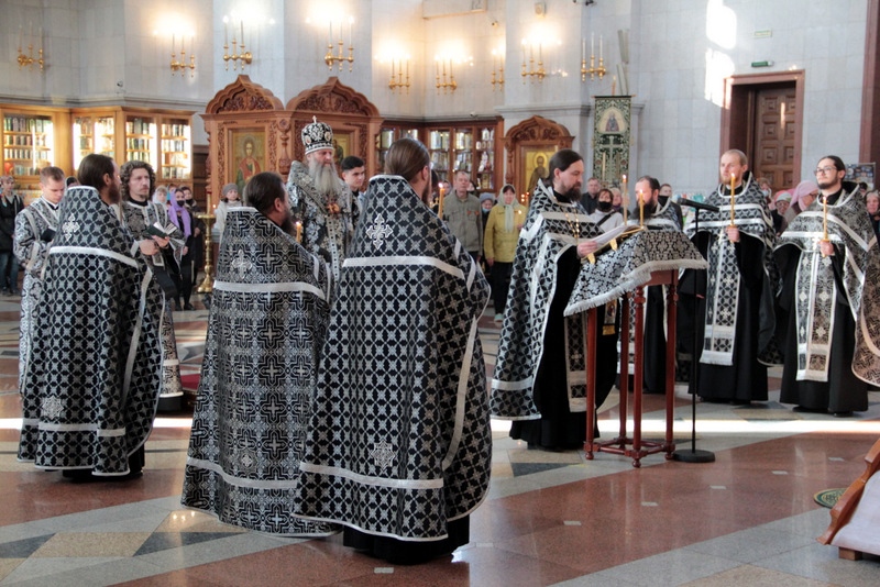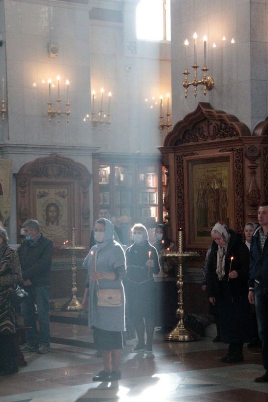 Вечернее богослужение с чтением двенадцати Евангелий в Спасо-Преображенском кафедральном соборе 29 апреля 2021 г.