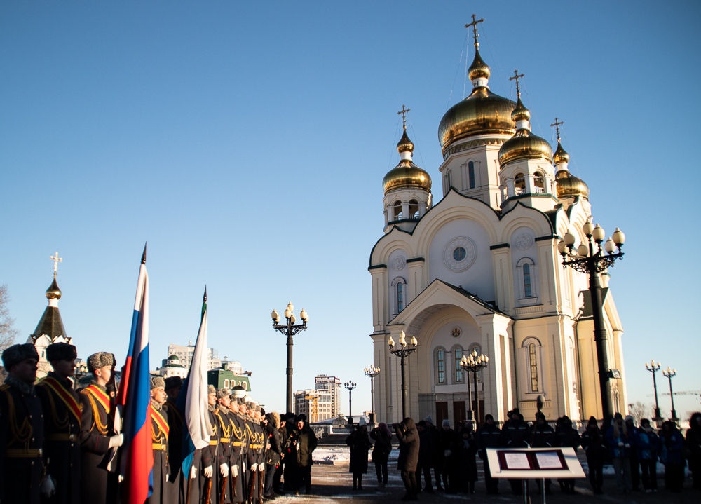 Хабаровск православный Фотогалерея События Митрополии Торжественная церемония внесения имен Героев Российской Федерации на Обелиск Славы 9 декабря 2024 г.